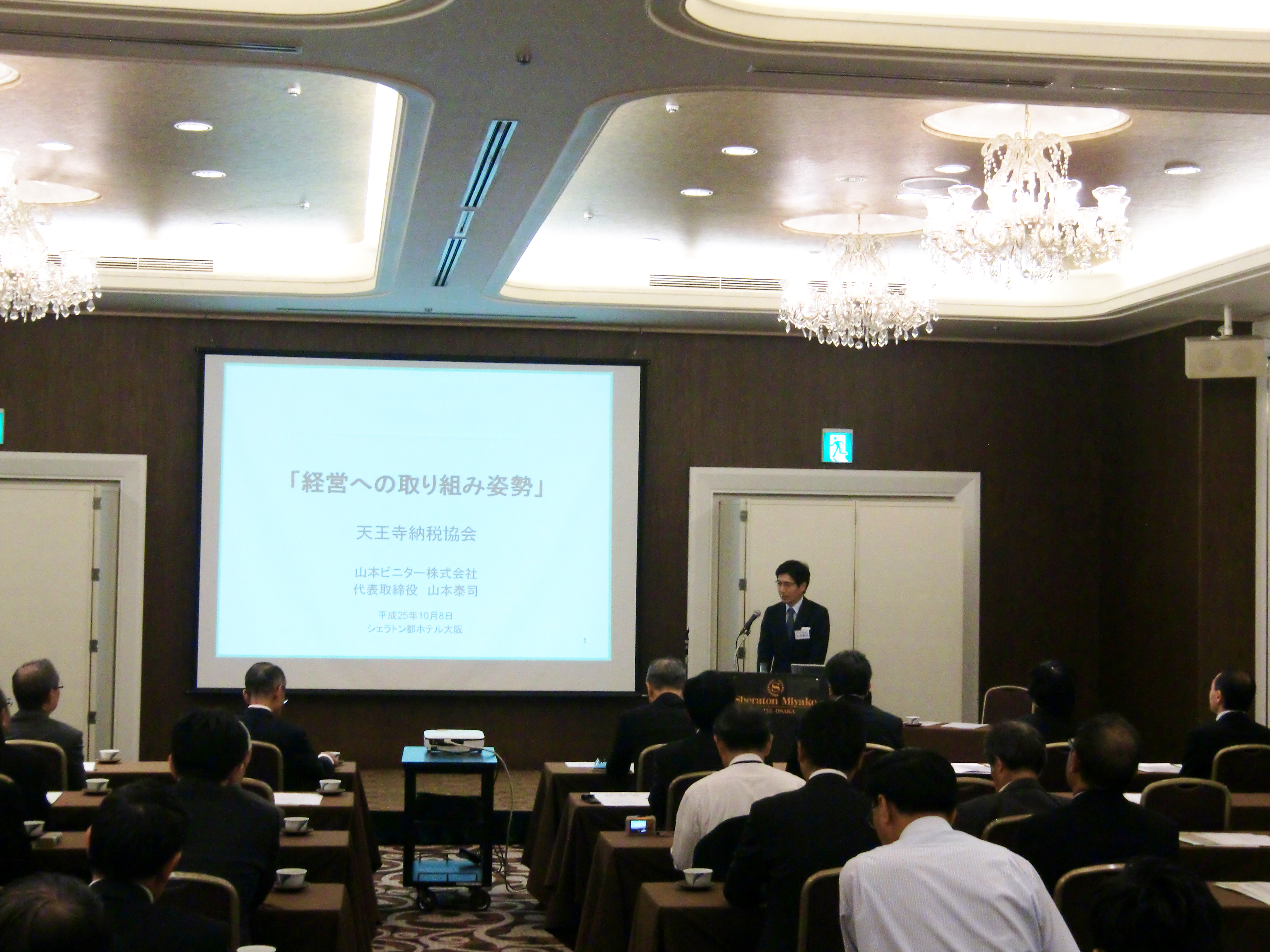 天王寺納税協会主催の講演会にて、当社社長の山本が「経営への取組み姿勢」について講演いたしました