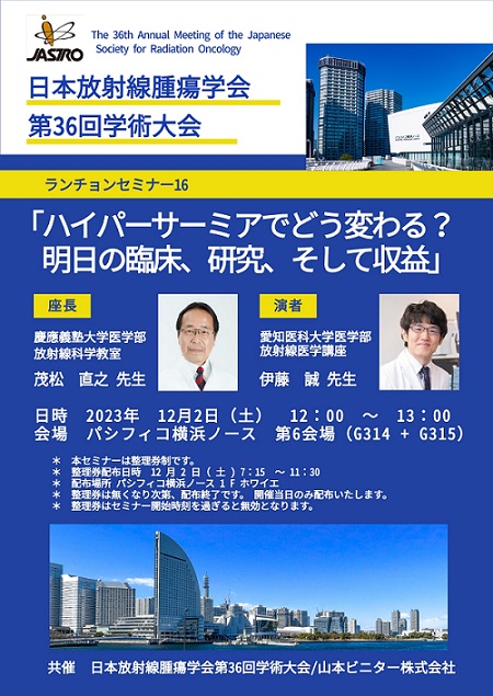 この度、2023年11月30日(木)より開催されます、日本放射線腫瘍学会第36回学術大会に参加いたします。12月2日におきましては愛知医科大学の伊藤誠先生によるランチョンセミナーを開催予定です。