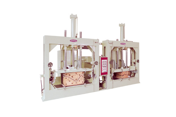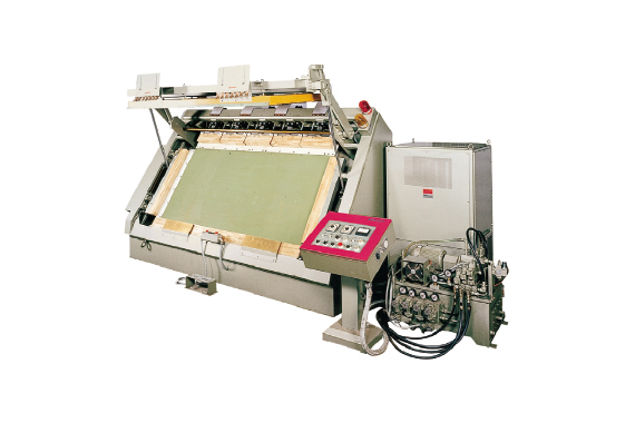傾斜型プレスの採用により作業性が大幅にアップ。家具部材の板はぎ、枠組接着や、システムキッチンの扉枠、フリー板の接着などに対応しています。