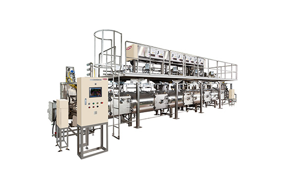 減圧式の連続マイクロ波乾燥機です。高温乾燥で品位の劣化のある被乾燥物を低温(30℃~60℃程度)で高品質に乾燥します。ダブルシャッターによるタクト送り方式の採用により、連続的な乾燥処理が可能です。