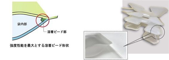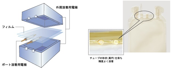 血液バッグは、血液をためる使い捨てのバッグです。複数あるポート部及び外周部を組み合わせ一体化して溶着されます。