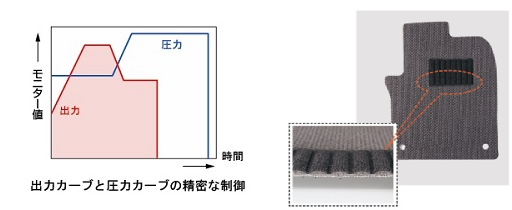 カーマットの表層には、ペダル操作で摩耗を受ける部分に、ヒールパッドが溶着されています。