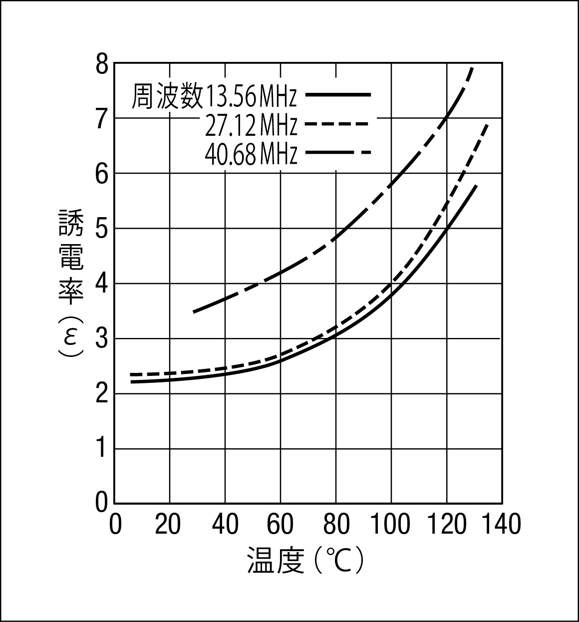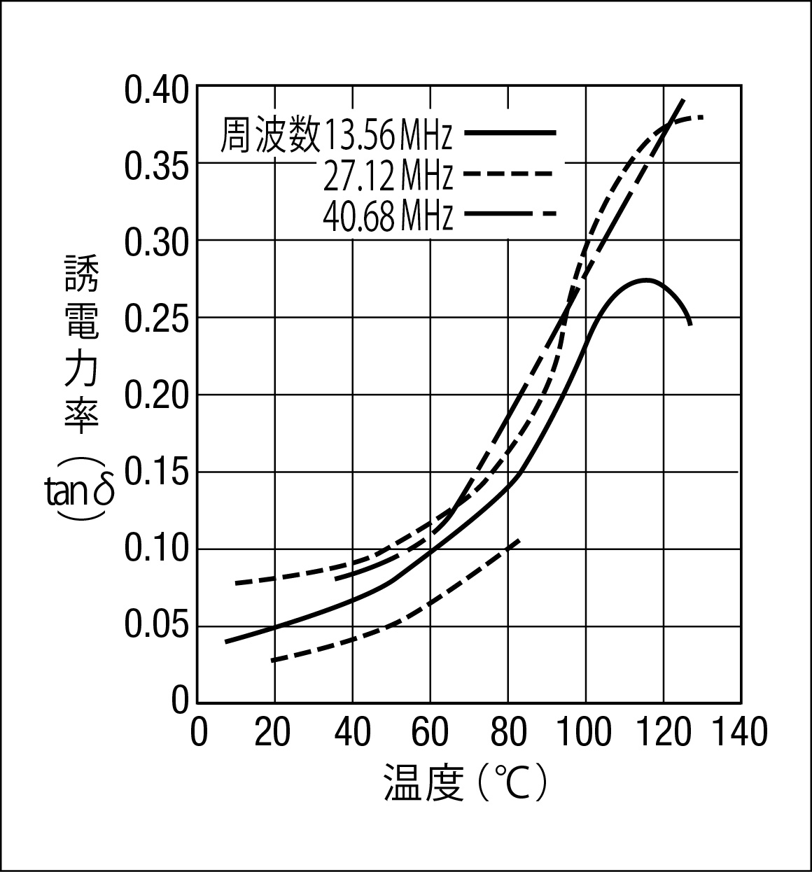 精密できれいなウェルダー加工を行うためには、加工素材であるプラスチックシートの電気特性を知ることが重要です。ご参考までにウェルダー加工に最も使用されている塩化ビニルPVCの電気特性を図b、c、d、eに示します。