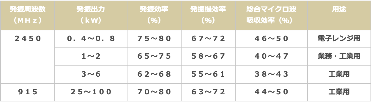 *総合マイクロ波吸収効率=(被加熱物に吸収された電力) / (発振機への供給電力)*100(%)