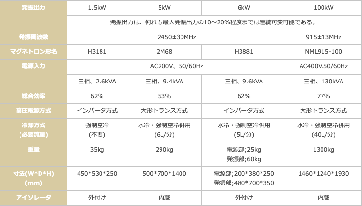*発振周波数915MHz・マイクロ波発振機の発振出力は「30kW,60kW,75kW」などもある。