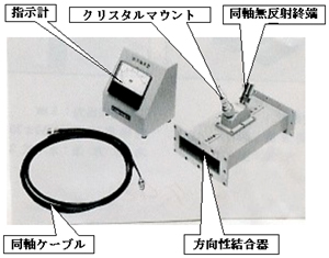 図11.2.1にパワ-モニタの外観を示している。指示計及び検出部が1式なので入射電力と反射電力を同時に測定することは出来ない。ここで図11.2.1の接続状態で入射電力を測定するとした場合、クリスタルマウントと同軸無反射終端器を入れ替えて接続することにより反射電力を読み取ることが可能である。