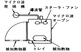箱形オ-ブンの最も代表的な例は家庭用の電子レンジであり、マイクロ波オ-ブンと言われることもある。通常、“チンをする”と言えば電子レンジを利用し食品を加熱することを意味している(当初の電子レンジは、加熱時間のタイマーがタイムアップするとベルを叩き“チン”と鳴らして処理終了を知らせていたため、このような文言が生まれた。最近は電子音に代わっている)。図12.2.1にバッチ式とコンベヤ式の箱形オ-ブンの概念図を示しており、両方式共比較的大形のブロック状被加熱物を加熱対象として用いられている。