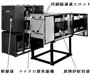 本加熱炉は印刷紙高速搬送装置、データ印字用インクジェットプリンタ(輸入品、フルカラー対応)、印字データ処理パソコンなどと本加熱炉を3式(合計出力:18kW)組み込んだ全長10m程度の一連の総合的な印刷システムとなっている。