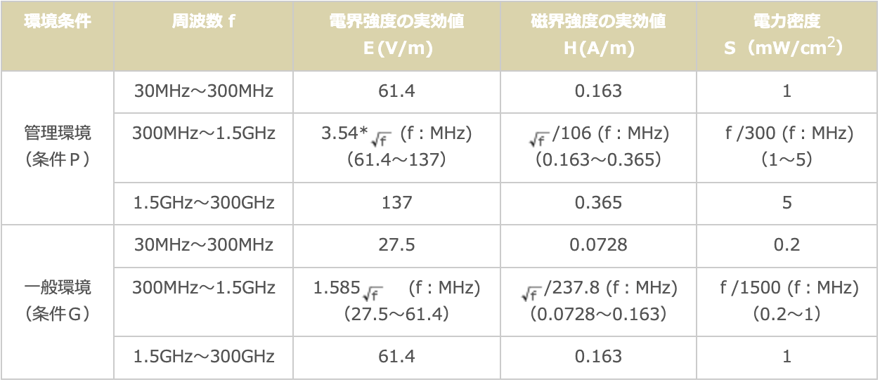 尚、「ペースメーカ使用者など特殊な状況に置かれている人」は、本電波防護指針の適用から除外されている。