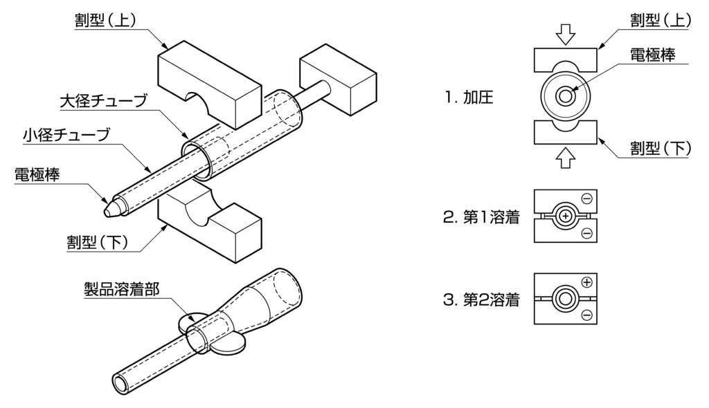 樹脂製のチューブ等を、内径を保持したまま強固に溶接するときには、円心円筒電極が用いられます。