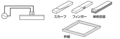 被加熱物の種類・形状や加熱の目的によって加熱方式(電極の構成や配置)はさまざまなものがあります。主な方式を以下にまとめました。なお、ここでは主に接着をおこなう場合で説明していますが、乾燥、加熱、成形、曲げにも利用される方式です。
