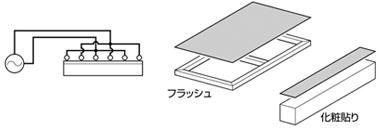 グリッド電極と呼ばれる導体棒の電極を被加熱物に沿って格子状に配置し、グリッド電極間に強い電界を生じさせることで、被加熱物の表面部を効率よく加熱させる方式です。表面材の接着や連続乾燥などに利用されています。