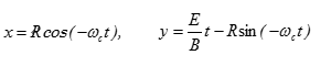 (図7-10-3)に示すように、直交する電磁界中での電子の運動は、次式で表せるサイクロイドとなります。