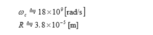 ωcはサイクロトン振動数、R はラーモア半径と呼ばれます。B =0.1〔T〕(1000ガウス)とした場合のωcとR は、