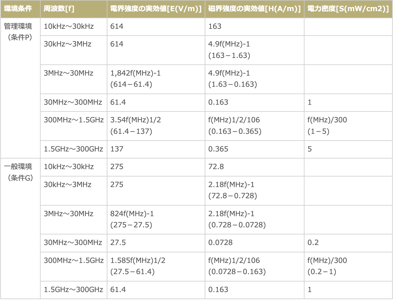 ※対象:身体に近接して使用する小形無線機など。0.3~3GHzで10cm以内。